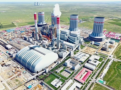 内蒙古国电电力上海庙发电公司4×1000MW燃煤机组钢结构间冷塔全部完工