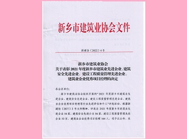 球友会手机版再次荣获“新乡市建筑业先进企业”等殊荣
