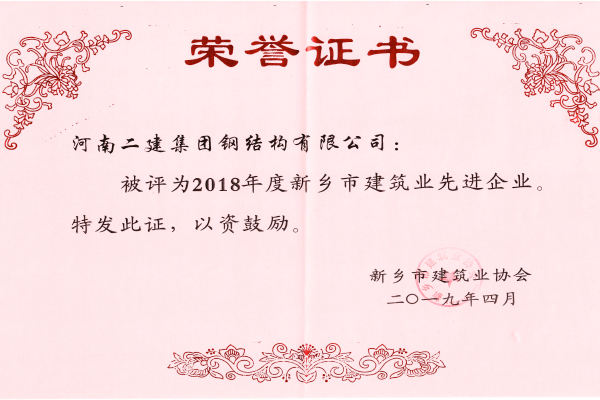 公司荣获“2018年度新乡市建筑业先进企业”