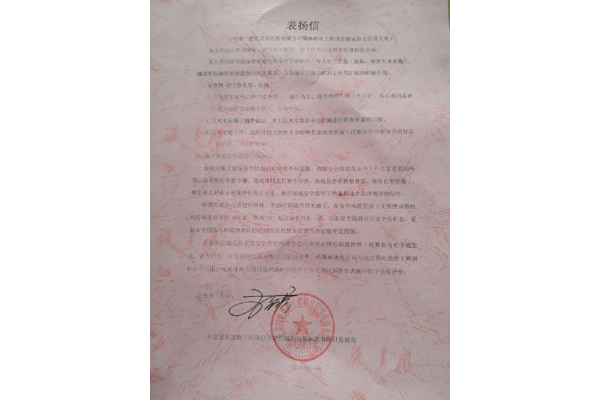 102019.01北京国电德胜工程项目管理有限公司锡林热 电项目监理部给钢构公司发来表扬信