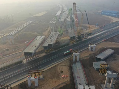 球友会手机版方唐高速跨兰南高速钢箱梁项目顺利完成跨路施工吊装